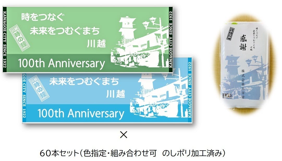 【オープン価格】川越市100周年記念タオル60本セット(贈答用のしポリ加工済み・色指定可・熨斗紙印刷有り)