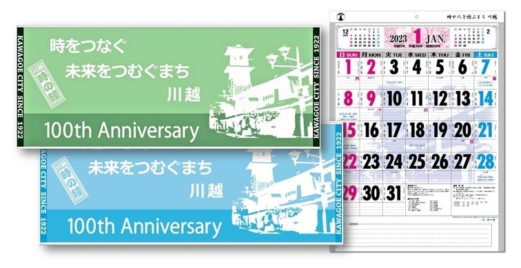 4月13日公開の【川越市100周年応援プロジェクト】では、集まった支援金で、川越市100周年記念タオル、バスタオル、手拭い、カレンダーを作成して、地元川越をはじめ全国の川越ファンへお届けします。