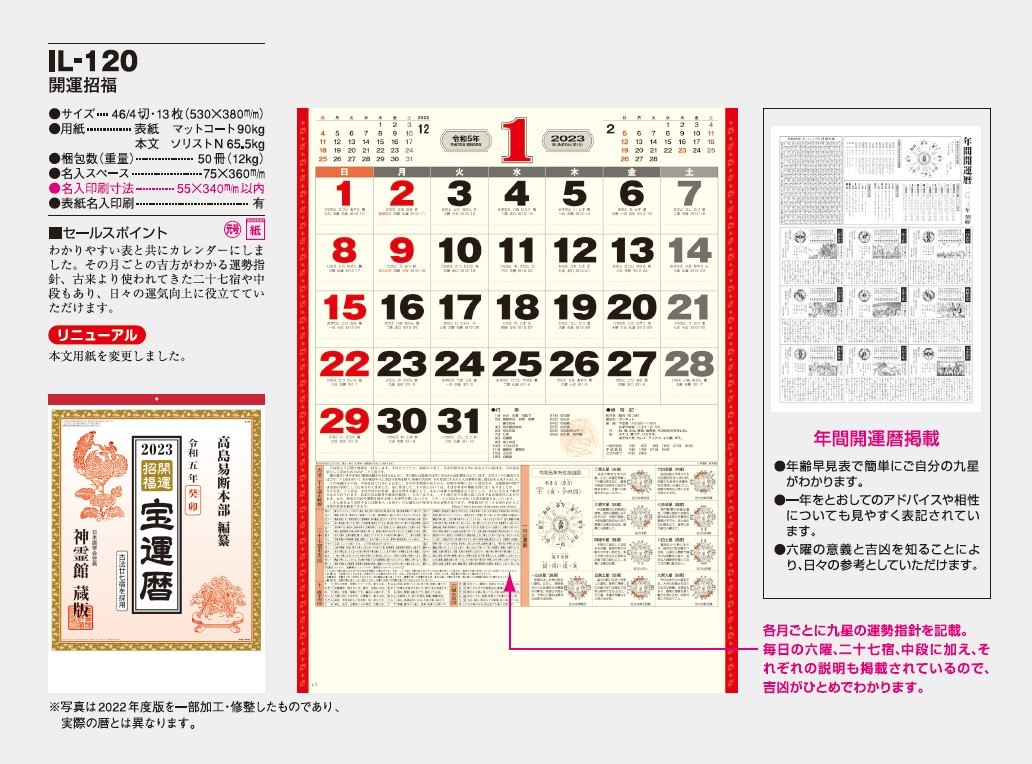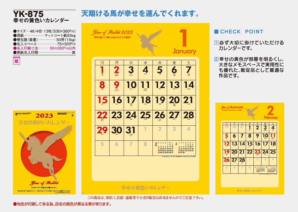 2022年9月14日 / 最終更新日 : 2025年7月8日 五幸堂 カレンダー 2023年版 カレンダーご紹介【開運・干支】 ★画像をクリックすると商品カタログ拡大ページを見ることができます。 IL120 開運招福 YK875 幸せの黄色いカレンダー NK157 七福神 ND116 干支七福神 SG306 干支〈卯歳〉紐付 ご注文、サンプル品のご依頼、お問合せにつきましては、各営業担当または下記へご連絡お願いします。 TEL:049-293-4022 FAX:049-293-4023e-mail:gokodo-kawagoe@g.email.ne.jp Follow me! FacebooktwitterHatenaPocketCopy