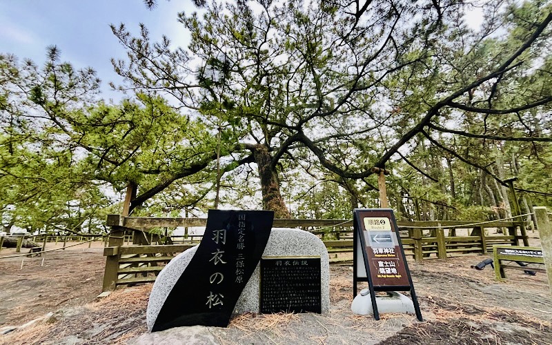 そんな松林の中に天女が羽衣をかけたとされる羽衣伝説で有名な「羽衣の松」を発見。樹齢200年と言われるその姿は貫禄十分でした。