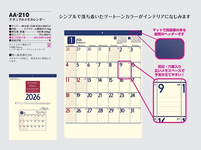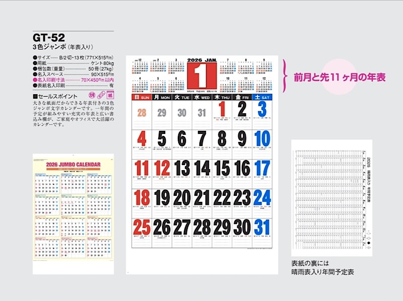 2026年版名入れカレンダー、まだ間に合います。卓上カレンダー、壁掛けカレンダー各種名入れ印刷いたします。